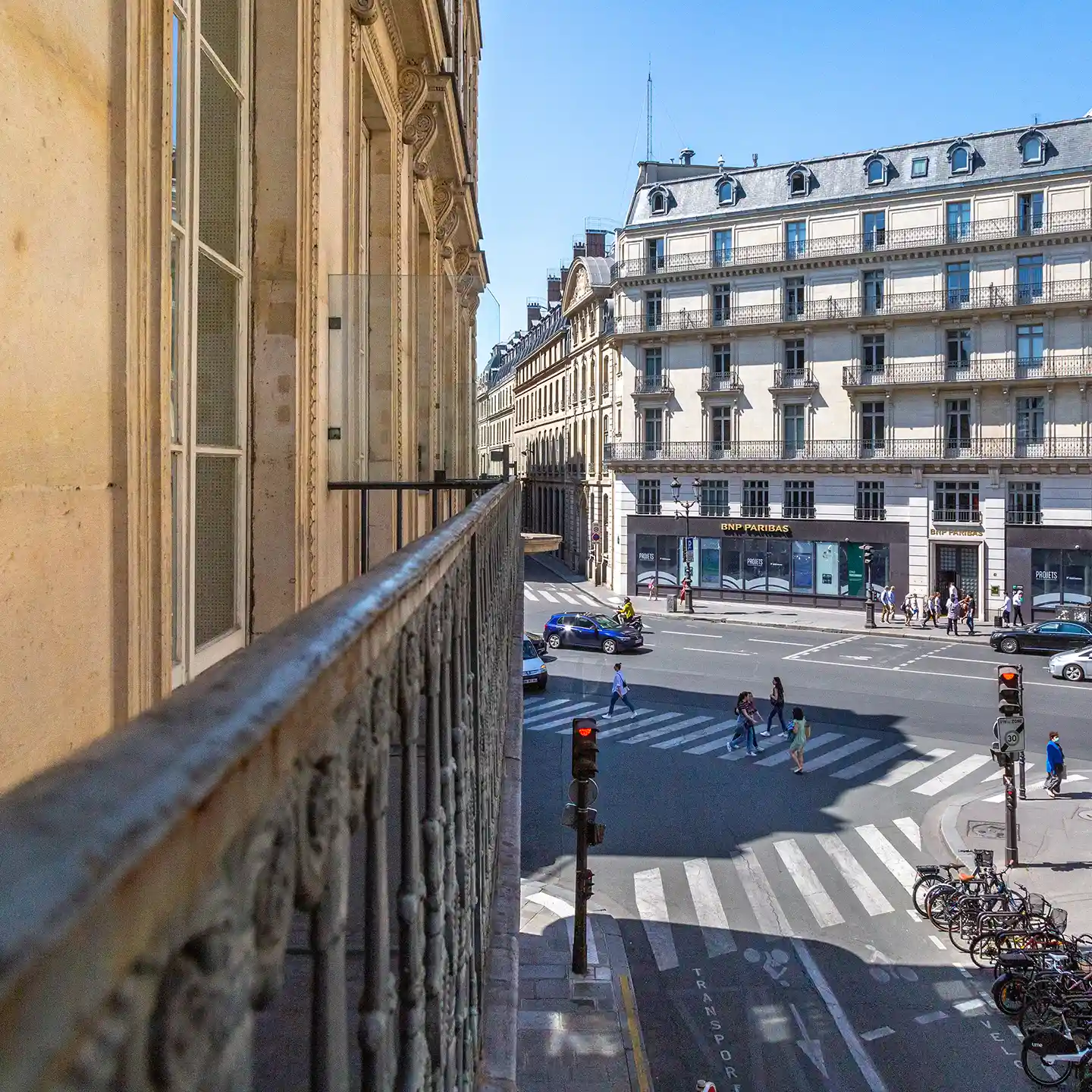 Notre suite, avec son balcon filant sur l’avenue de l’Opéra, est un véritable aparté de luxe au cœur de Paris.